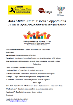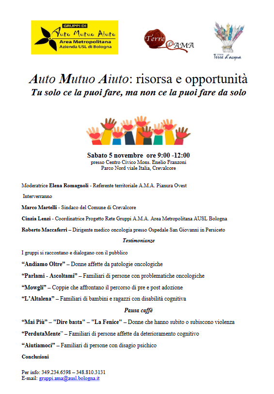 Per info: 349.234.6598 - 348.810.3131; e-mail: gruppi.ama@ausl.bologna.it