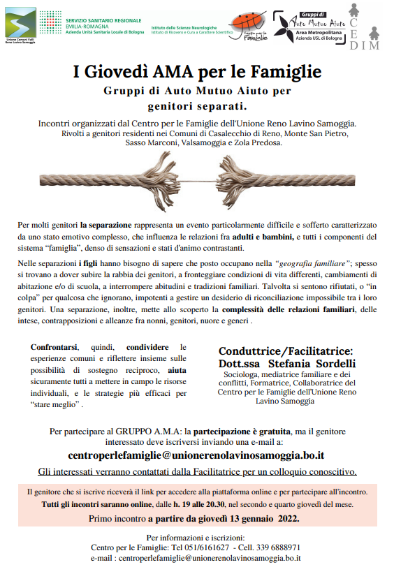 Per molti genitori la separazione rappresenta un evento particolarmente difficile e sofferto caratterizzato da uno stato emotivo complesso, che influenza le relazioni fra adulti e bambini, e tutti i componenti del sistema “famiglia”, denso di sensazioni e stati d'animo contrastanti. Nelle separazioni i figli hanno bisogno di sapere che posto occupano nella “geografia familiare”; spesso si trovano a dover subire la rabbia dei genitori, a fronteggiare condizioni di vita differenti, cambiamenti di abitazione e/o di scuola, a interrompere abitudini e tradizioni familiari. Talvolta si sentono rifiutati, o “in colpa” per qualcosa che ignorano, impotenti a gestire un desiderio di riconciliazione impossibile tra i loro genitori. Una separazione, inoltre, mette allo scoperto la complessità delle relazioni familiari, delle intese, contrapposizioni e alleanze fra nonni, genitori, nuore e generi.