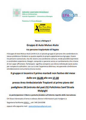 Chi fosse interessato al tema e volesse ulteriori informazioni può rivolgersi a: Segreteria facilitante A.M.A. : cell. 349.234.6598 oppure alla seguente mail: epatostibologna@gmail.com