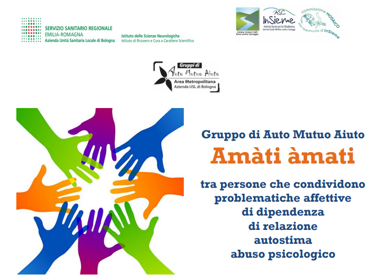 Il gruppo Amàti àmati esplora la difficoltà della dipendenza affettiva che ha radici in esperienze infantili negative e che ci porta a creare legami affettivi trascuranti, frustranti e violenti. Il gruppo diventa la forza che sostiene la persona a cambiare cominciando ad amarsi e ad amare l’altro/a in modo più soddisfacente e costruttivo.