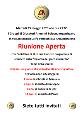 Riunione aperta dei Gruppi di Giocatori Anonimi Bologna