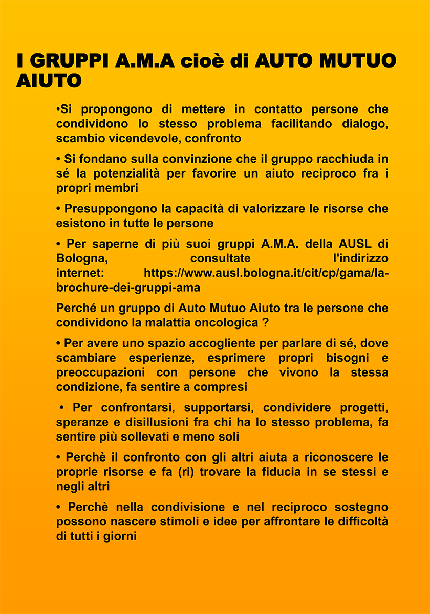 - Perchè confrontarsi, supportarsi, condividere progetti, speranze e disillusioni fra chi ha lo stesso problema, fa sentire più sollevati e meno soli