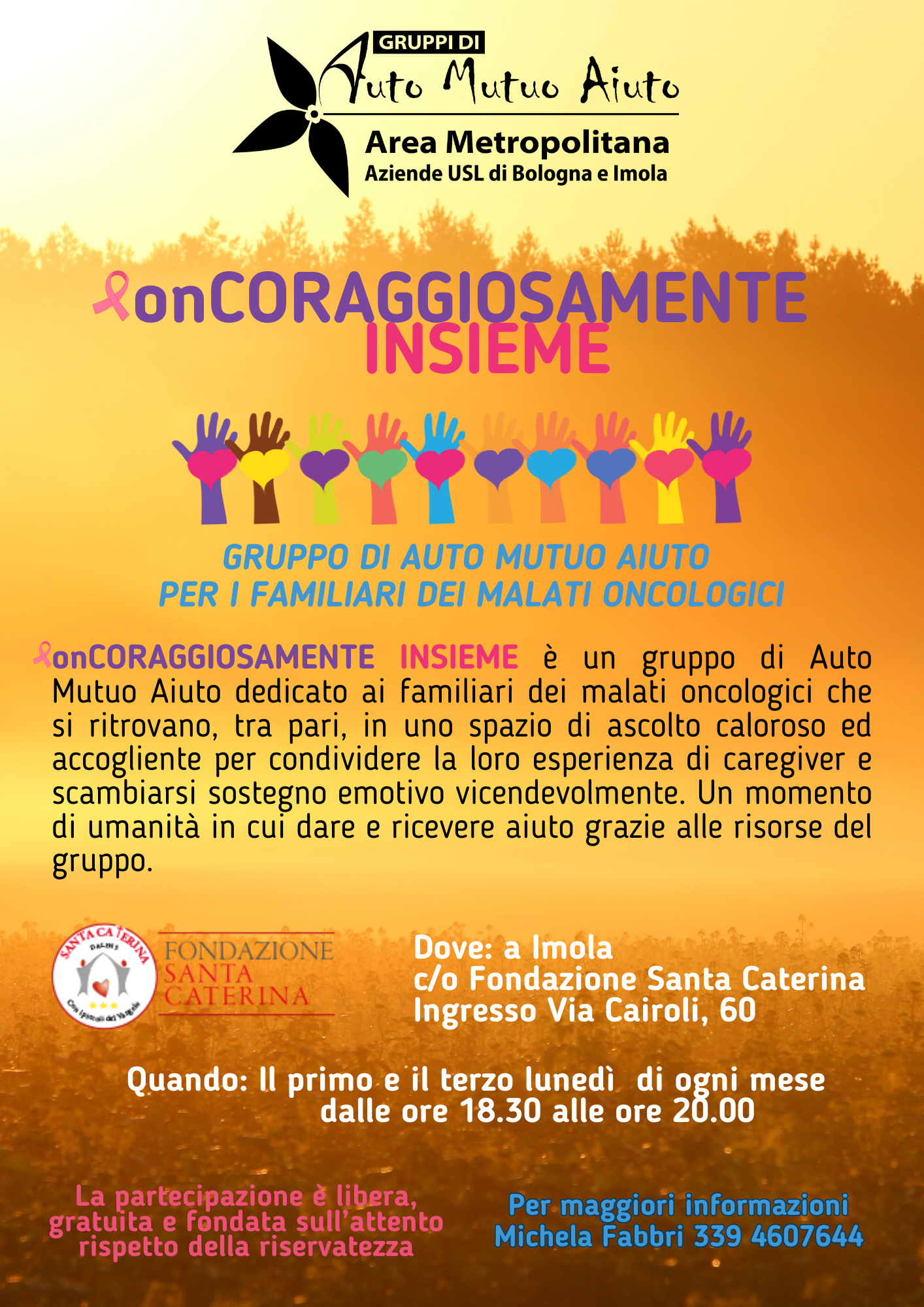 Il gruppo di Auto Mutuo Aiuto "onCORAGGIOSAMENTE INSIEME", dedicato ai familiari dei malati oncologici, propone un prezioso spazio di ascolto e condivisione. Gli incontri si svolgono in un ambiente accogliente, dove i partecipanti possono raccontare le proprie esperienze di caregiver, scambiarsi sostegno emotivo e riscoprire la forza dell'umanità attraverso il confronto.