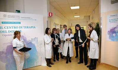 Il nuovo Centro di Terapia del Dolore è stato inaugurato oggi, 20 novembre, da Nicoletta Bonora, Responsabile Cure Primarie Distretto di Bologna Azienda Usl di Bologna, Giovanni Frezza, Direttore Dipartimento Oncologico/Servizi Azienda Usl di Bologna, Chiara Gibertoni, Direttore Generale Azienda Usl di Bologna, Marzia Melloni, Responsabile DATeR Ospedale Bellaria, Stefania Taddei, Direttore Anestesia Terapia intensiva Nord e Terapia del Dolore – Presidente Comitato Ospedale Territorio Senza Dolore Azienda Usl di Bologna.