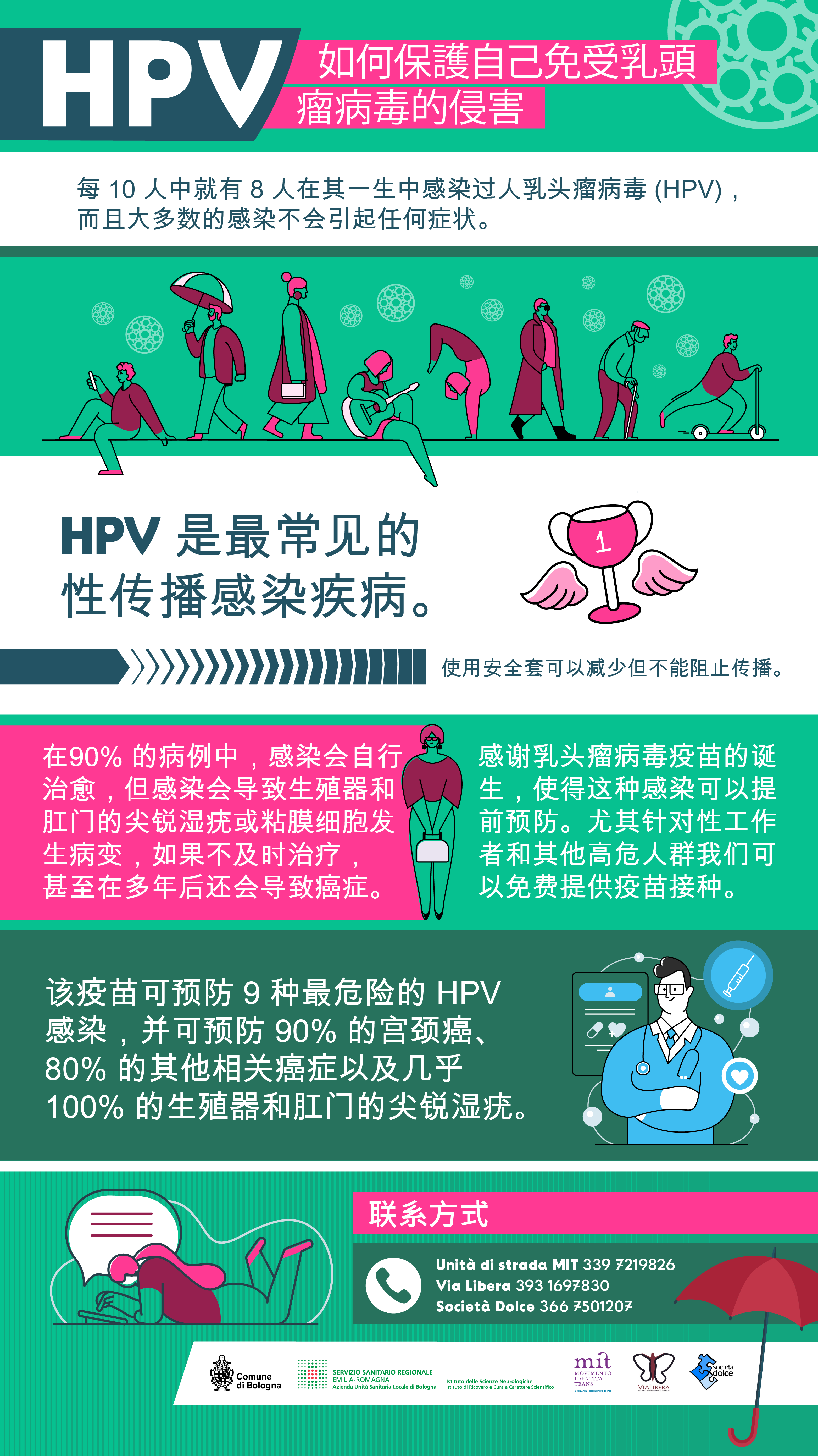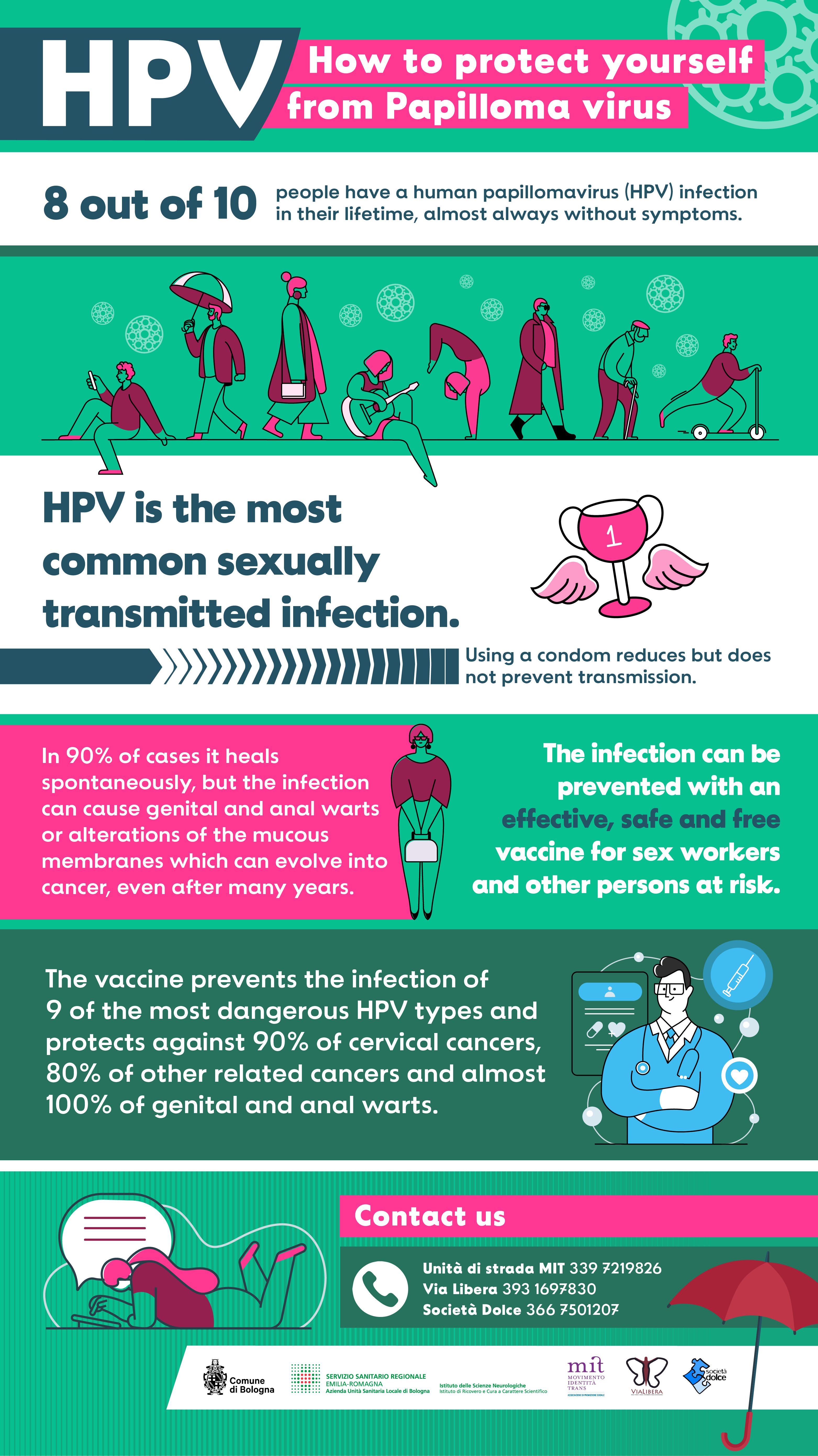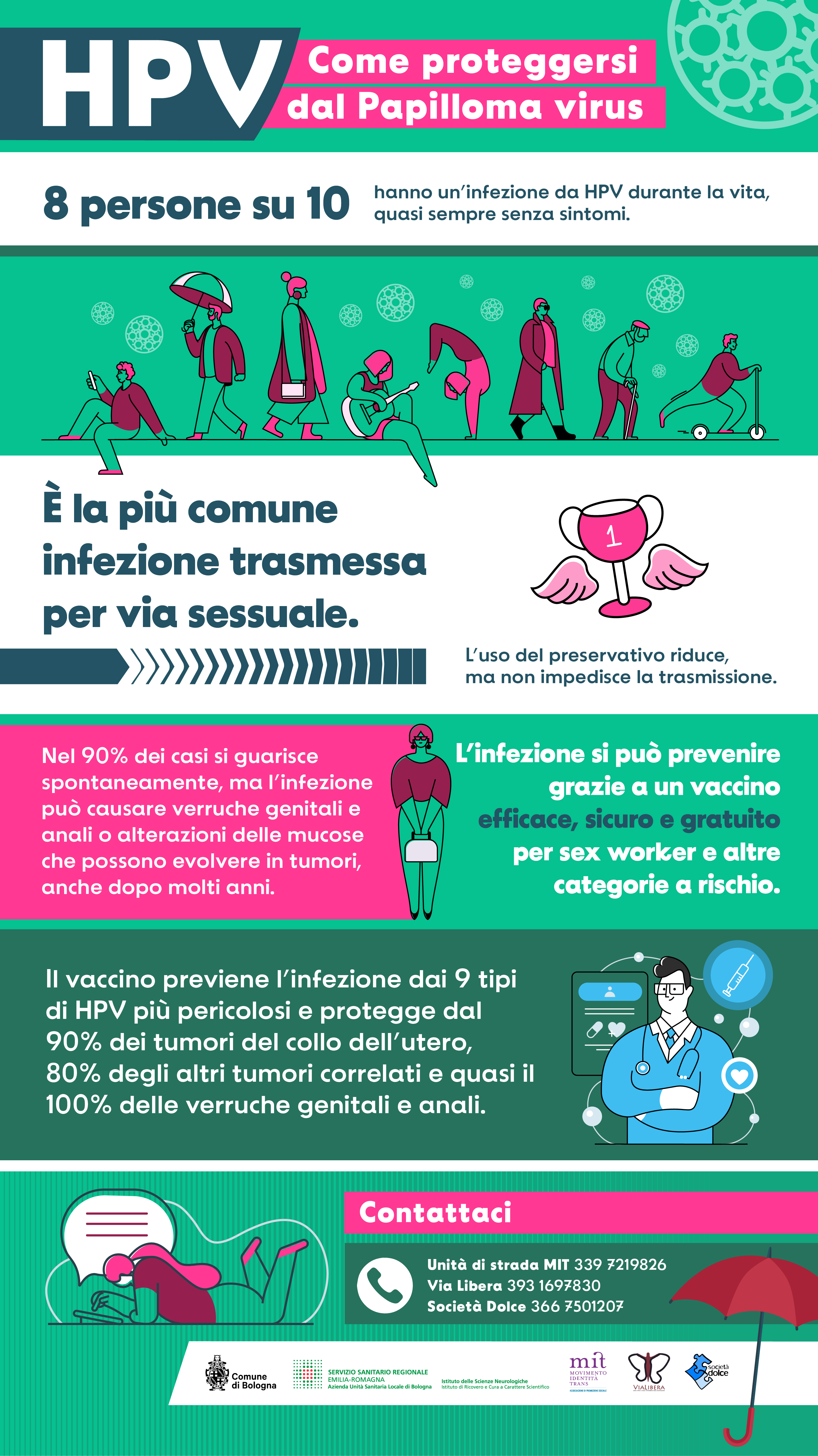 Nell'ambito del progetto Via Luna, coordinato dal Comune di Bologna e gestito dalle associazioni MIT e Via Libera e dalla cooperativa Società Dolce, l'Azienda USL promuove la vaccinazione anti-HPV a persone che si prostituiscono con l'accompagnamento da parte delle associazioni presso gli ambulatori vaccinali.