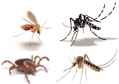 La quasi totalità di questi vettori sono compresi tra le cosiddette Specie di interesse medico appartenenti a 3 famiglie due di insetti ditteri e una di aracnidi acarini.