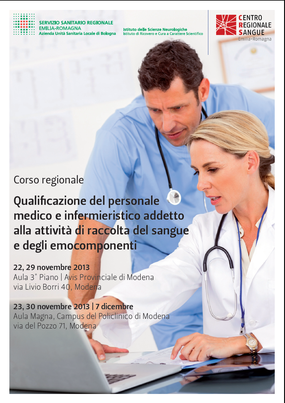 • infermieri addetti alla attività di raccolta del sangue e degli emocomponenti, tecnici in servizio presso i SIMT regionali.