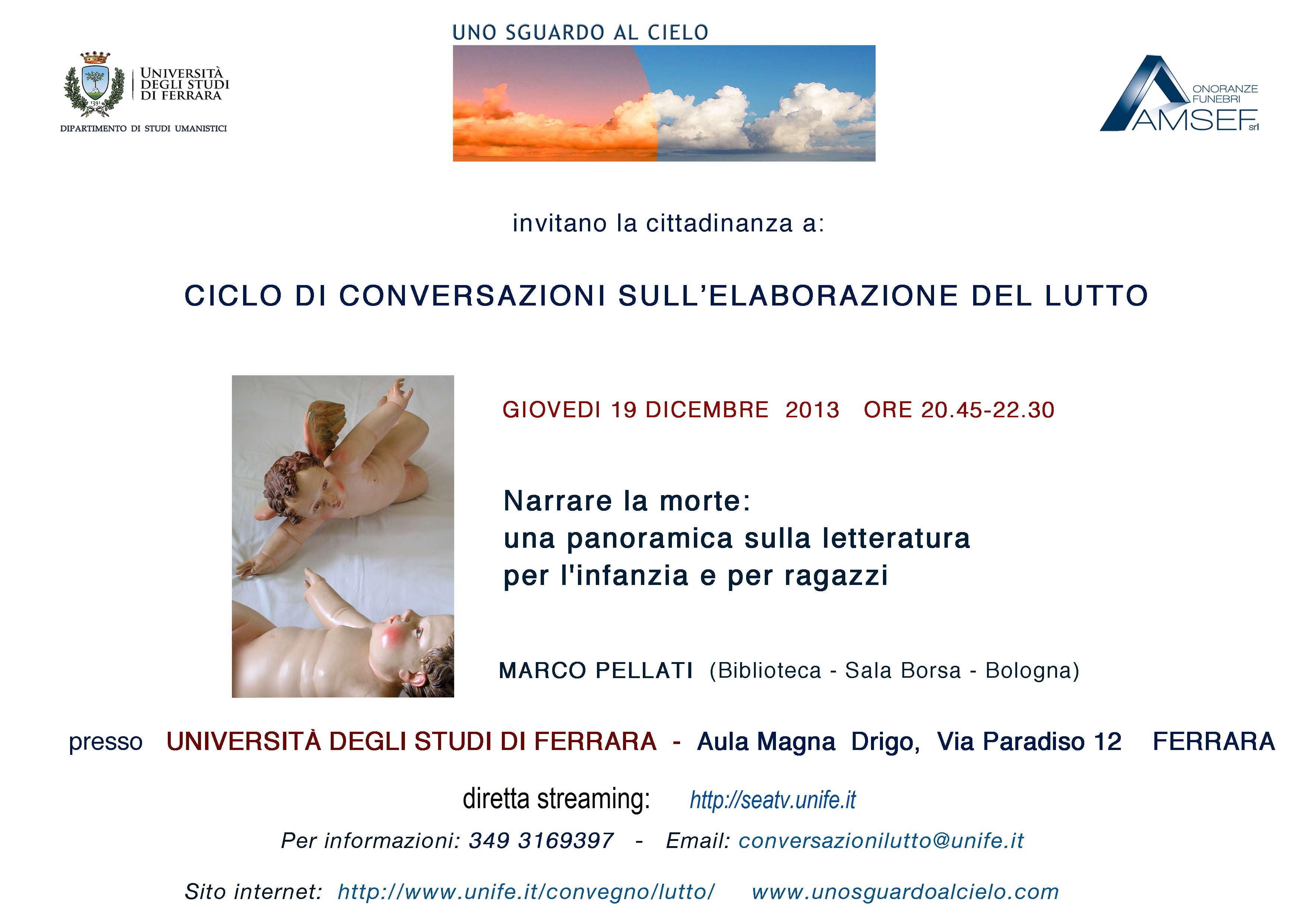 Uno sguardo dal cielo Narrare la morte: una panoramica sulla letteratura per l'infanzia e i ragazzi https://www.ausl.bologna.it/eventi/archivio/auslevent.2013-12-17.8835379897https://www.ausl.bologna.it/eventi/archivio/auslevent.2013-12-17.8835379897/@@download/image/Uno sguardo dal cielo.JPG