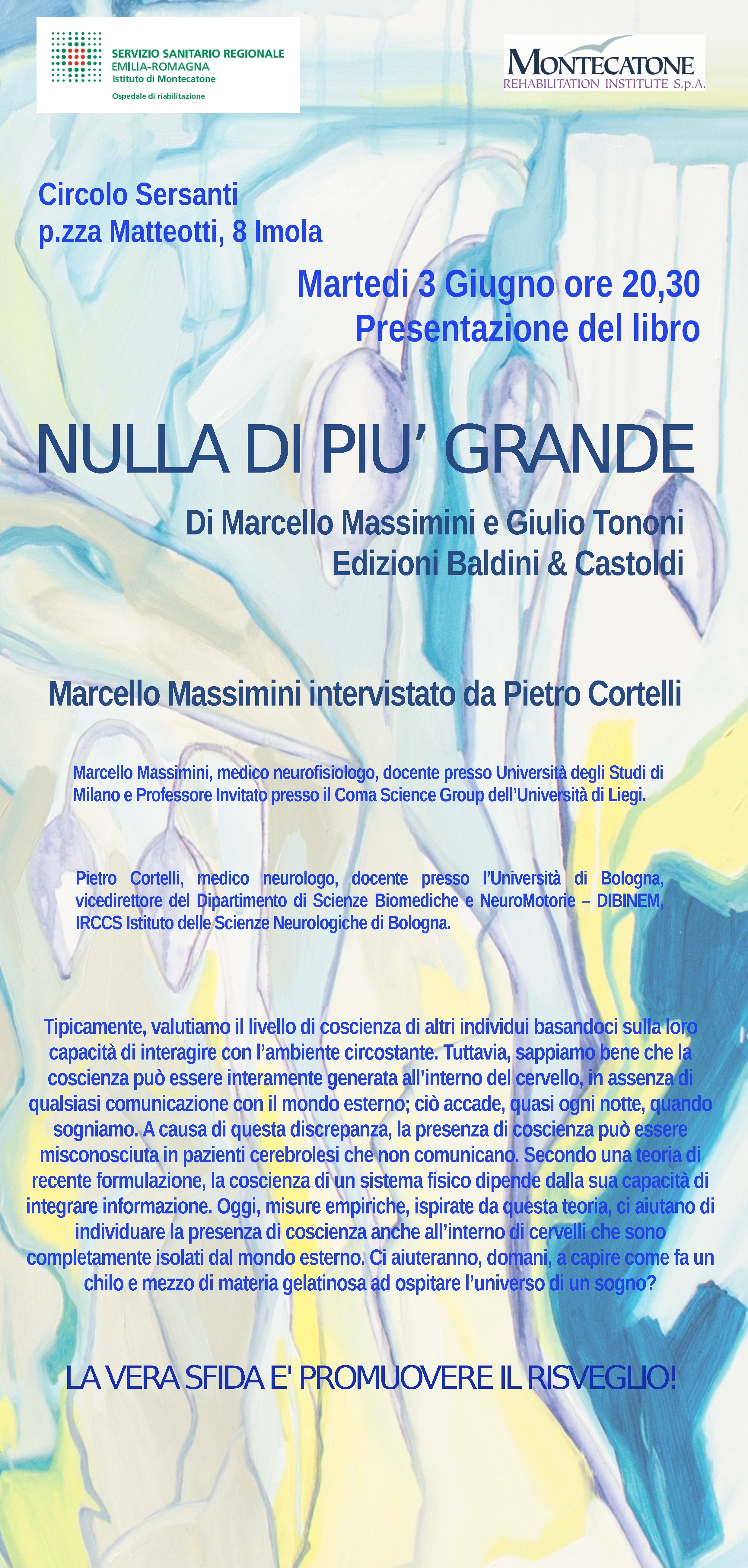 Nulla di più grande Presentazione del libro di Marcello Massimini e Giulio Tononi https://www.ausl.bologna.it/eventi/archivio/auslevent.2014-05-29.2543015241https://www.ausl.bologna.it/eventi/archivio/auslevent.2014-05-29.2543015241/@@download/image/Nulla di più grande.JPG