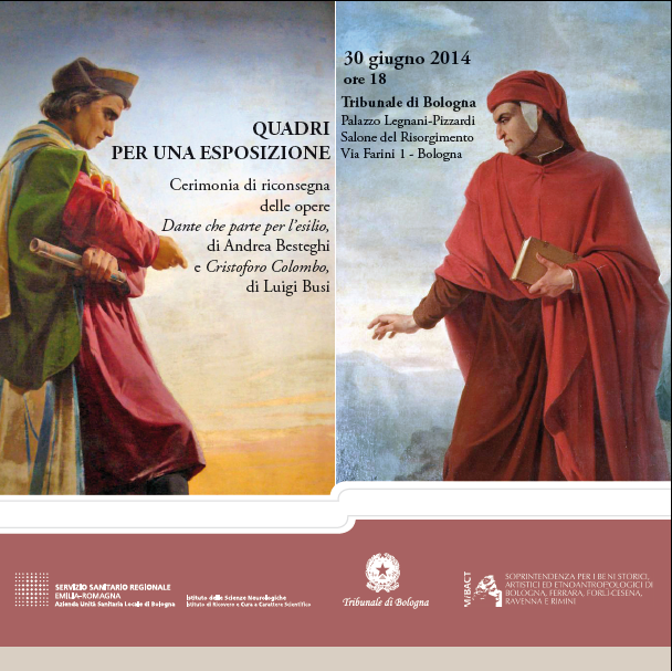 Quadri per una esposizione Cerimonia di riconsegna delle opere "Dante che parte per l'esilio" di Andrea Besteghi e "Cristoforo Colombo" di Luigi Busi https://www.ausl.bologna.it/eventi/archivio/auslevent.2014-06-26.5905989724https://www.ausl.bologna.it/eventi/archivio/auslevent.2014-06-26.5905989724/@@download/image/Dante 30 06 14.bmp