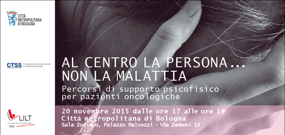 Al centro la persona... non la malattia Percorsi di supporto psicofisico per pazienti oncologiche https://www.ausl.bologna.it/eventi/archivio/auslevent.2015-11-18.4825853690https://www.ausl.bologna.it/eventi/archivio/auslevent.2015-11-18.4825853690/@@download/image/al centro la persona.bmp