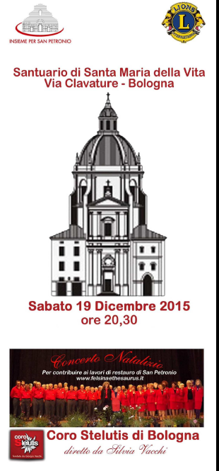Anche quest'anno Il Coro Stelutis di Bologna, diretto dalla Maestra Silvia Vacchi, offrirà alla cittadinanza un Concerto di musiche natalizie, con l'identica finalità degli scorsi anni: contribuire alla opere murarie della Basilica di San Petronio.