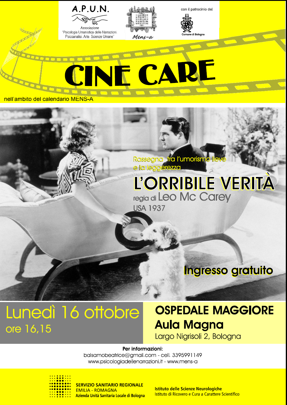 Cine Care - Rassegna tra l'umorismo lieve e la leggerezzaProiezione del film "L'Orribile verità" di Leo McCarey, USA 1937https://www.ausl.bologna.it/eventi/archivio/auslevent.2017-09-14.4794961898https://www.ausl.bologna.it/eventi/archivio/auslevent.2017-09-14.4794961898/@@download/image/Cine Care.bmp