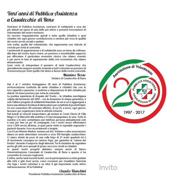 La storia, le persone, i servizi, le attività e la vita della Pubblica Assistenza di Casalecchio di Reno.