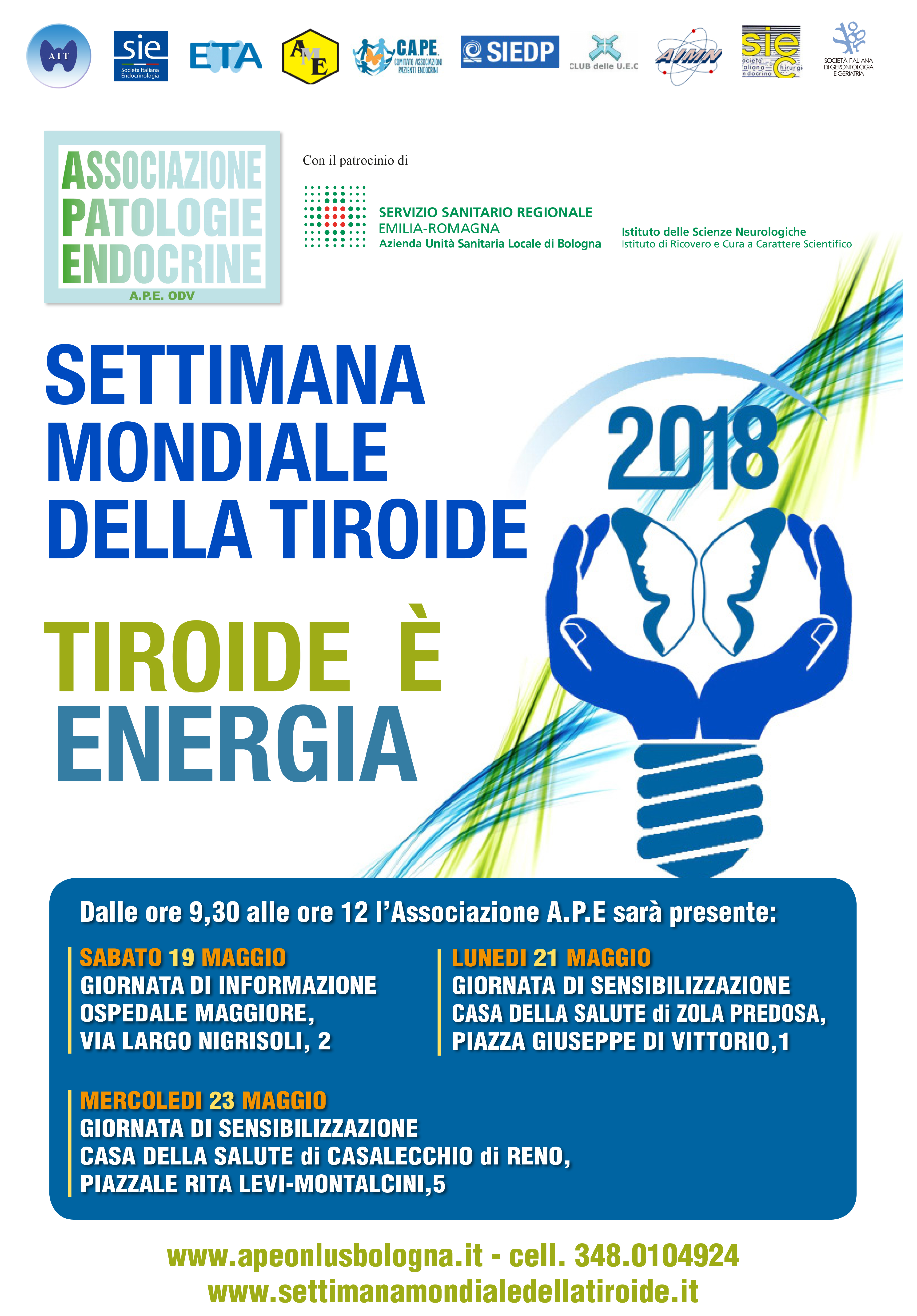 Anche l'Azienda USL di Bologna aderisce alla manifestazione, in collaborazione con APE Onlus Bologna, con tre giornate di informazione e sensibilizzazione: all'Ospedale Maggiore di Bologna sabato 19 maggio, alla Casa della Salute Lavino Samoggia lunedì 21 maggio e alla Casa della Salute di Casalecchio di Reno mercoledì 23 maggio.