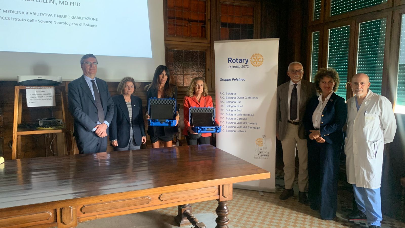 I Club Rotary di Bologna hanno donato all’IRCCS Istituto delle Scienze Neurologiche di Bologna e all’Azienda USL di Bologna due kit di ultima generazione per la tele-riabilitazione: un’importante tecnologia del valore di 10.000 euro. La cerimonia di consegna, svoltasi oggi nella biblioteca storica dell’Ospedale Bellaria, ha visto la partecipazione dei Club Rotary del Gruppo Felsineo, con capofila la Presidente AR 2023-2024 Patrizia Farruggia del Rotary Club Bologna Valle del Savena.