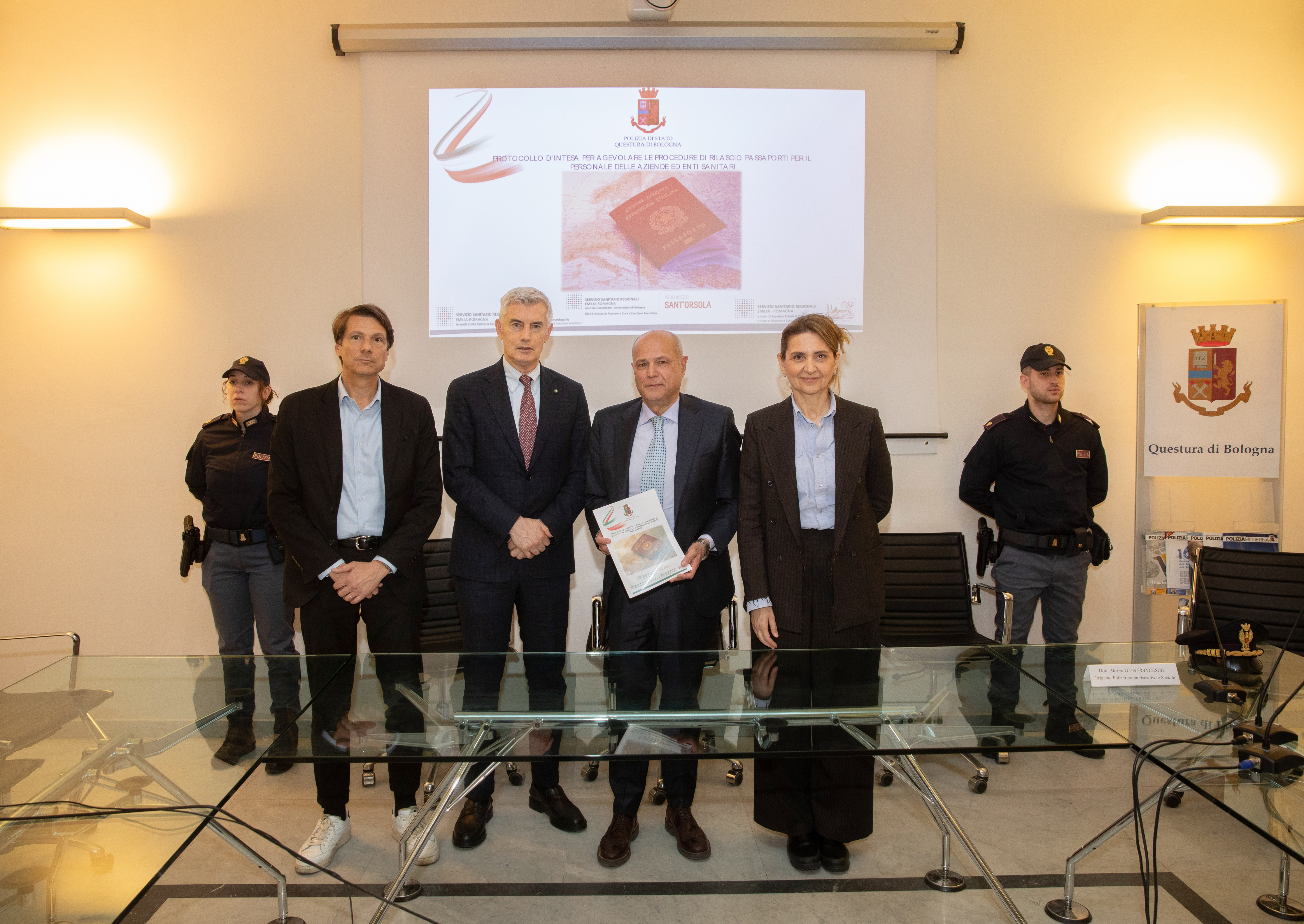 Agevolare e rendere più rapido il rilascio dei passaporti per i dipendenti dell’Azienda USL di Bologna, dell'IRCCS Policlinico di Sant’Orsola e dell'IRCCS Istituto Ortopedico Rizzoli. Con questo obiettivo nasce il nuovo protocollo d’intesa siglato oggi presso la Questura di Bologna dal Questore Antonio Sbordone e i Direttori degli Enti Sanitari di cui sopra, rispettivamente il dott. Paolo Bordon, la Dott.ssa Chiara Gibertoni e il Dott. Anselmo Campagna.