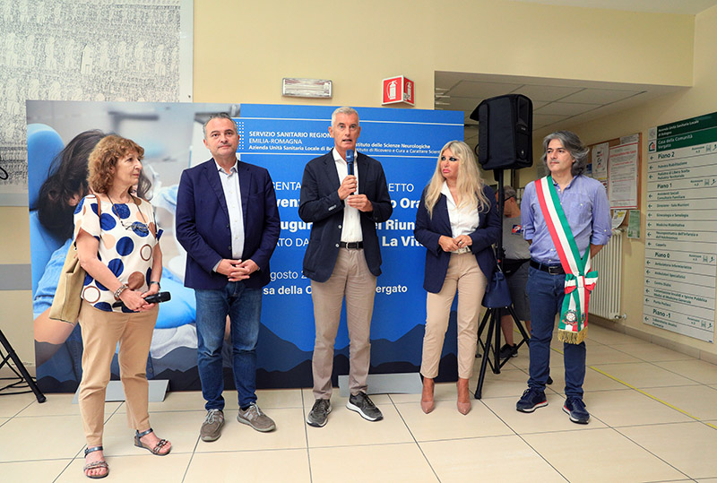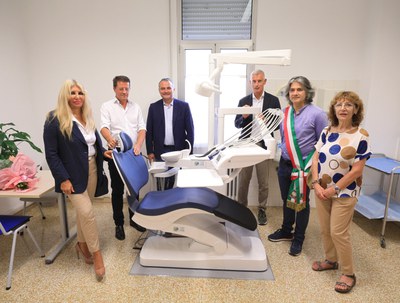 Un nuovo servizio per l'Appennino, possibile grazie alla donazione di una poltrona odontoiatrica del valore di 30.000 euro da parte della ONLUS PER LA VITA di Vergato, è stato presentato alla Casa della Comunità di Vergato oggi, 27 agosto 2024, da Giuseppe Argentieri, sindaco di Vergato, Annamaria Baietti, direttrice del Dipartimento delle Chirurgie Specialistiche, Sandra Mondini, direttrice del Distretto Appennino, e Paolo Mingarelli, presidente Onlus Per La Vita. Insieme a loro Paolo Bordon, direttore generale Azienda USL di Bologna e Raffaele Donini, assessore regionale alla Salute.