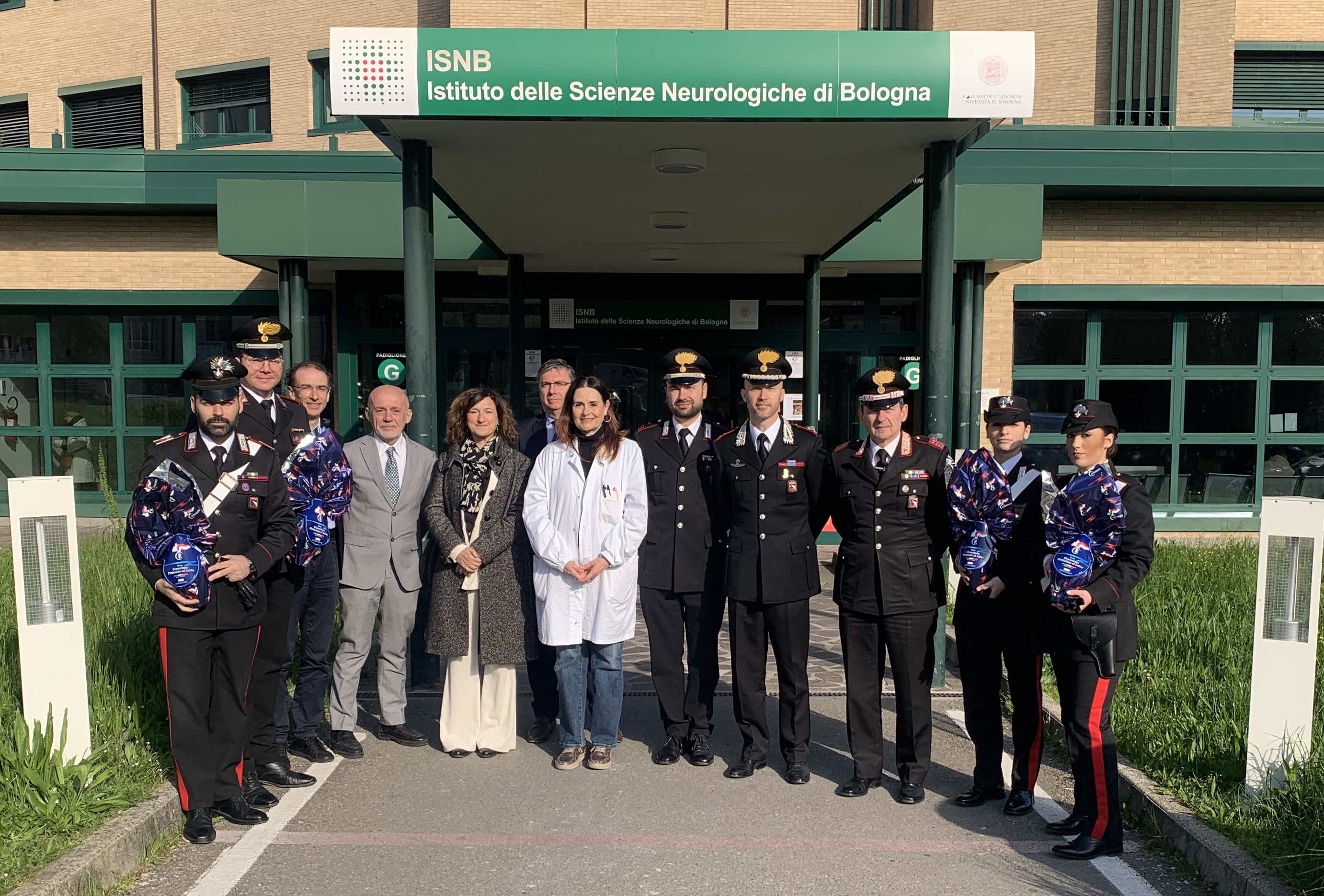 Ad accompagnare il Maresciallo Maggiore Andrea Palumbo, Comandante della Stazione Carabinieri Bologna San Ruffillo, e il Luogotenente Angelo Strappato, Comandante della Stazione Carabinieri Bologna, insieme a una rappresentanza dell’Arma, sono stati la Dott.ssa Anna Maria Petrini, Direttrice Generale dell'Azienda USL di Bologna, insieme alla direzione dell’IRCCS Istituto delle Scienze Neurologiche, il Prof. Raffaele Lodi, Direttore Scientifico, il Dott. Giovanni Ferro, Direttore Amministrativo, e il Dott. Andrea Longanesi, Direttore Operativo.