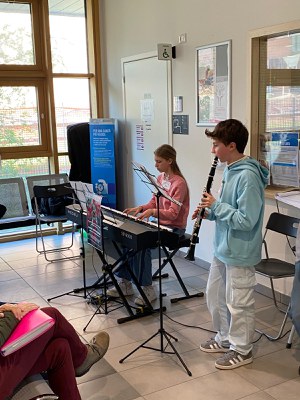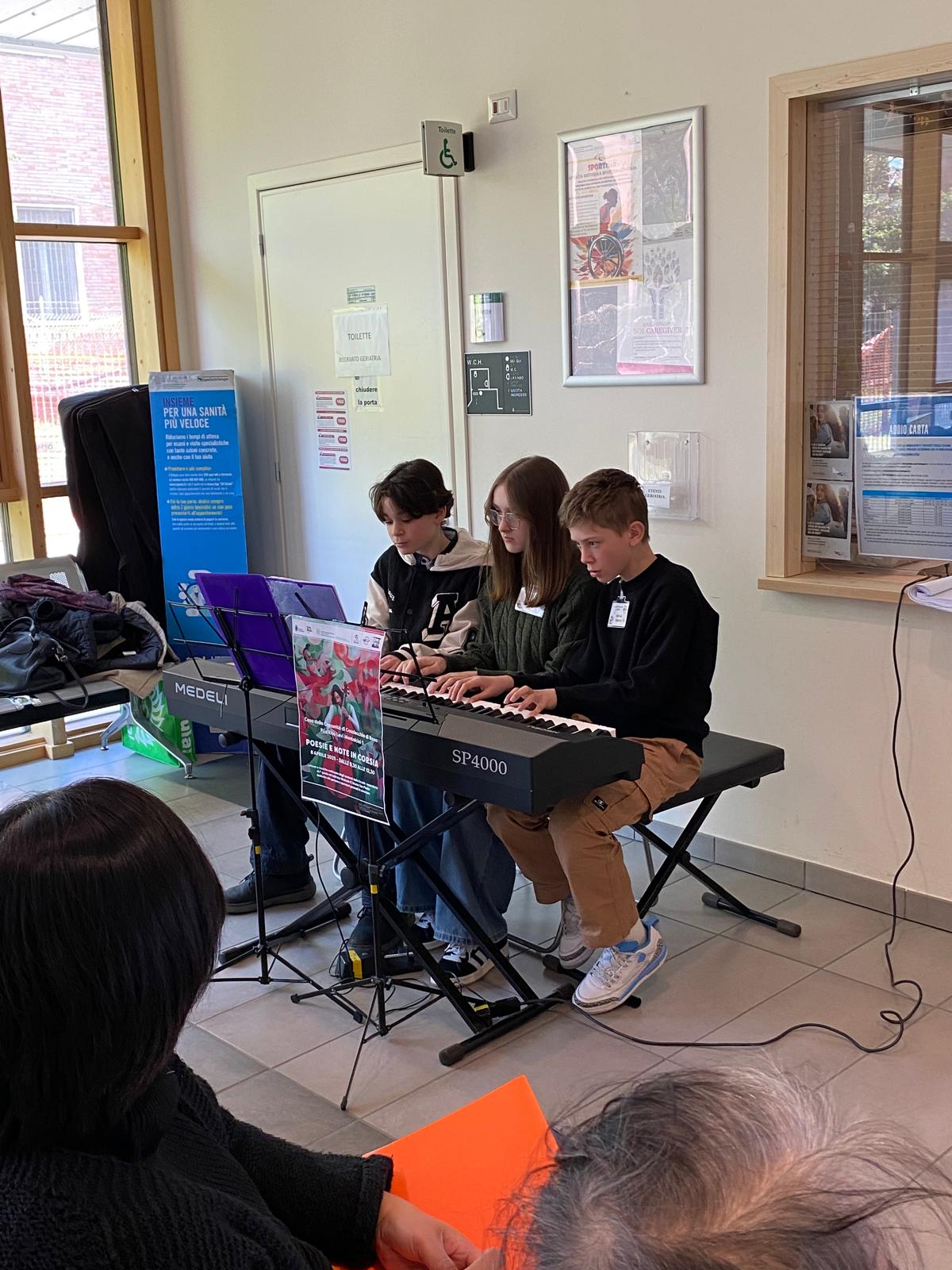 Chi attendeva una visita medica ha ricevuto anche l’omaggio di una delle poesie preparate da ragazze e ragazzi. Alcune persone si sono attardate anche dopo l’esame effettuato nell’ascolto di chi suonava.