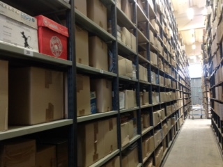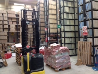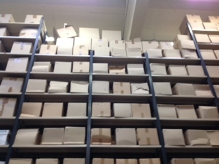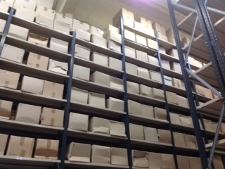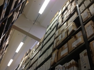 dall'archivio, dove sono collocate, su pedane, su scaffali in alto o