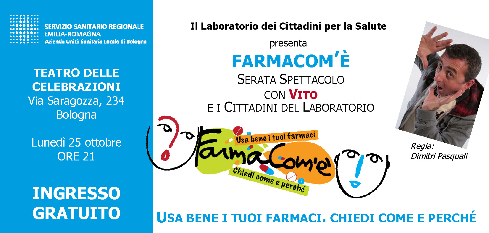 La spettacolo ha presentato FarmaCom'è la nuova campagna dell’Azienda USL di Bologna.