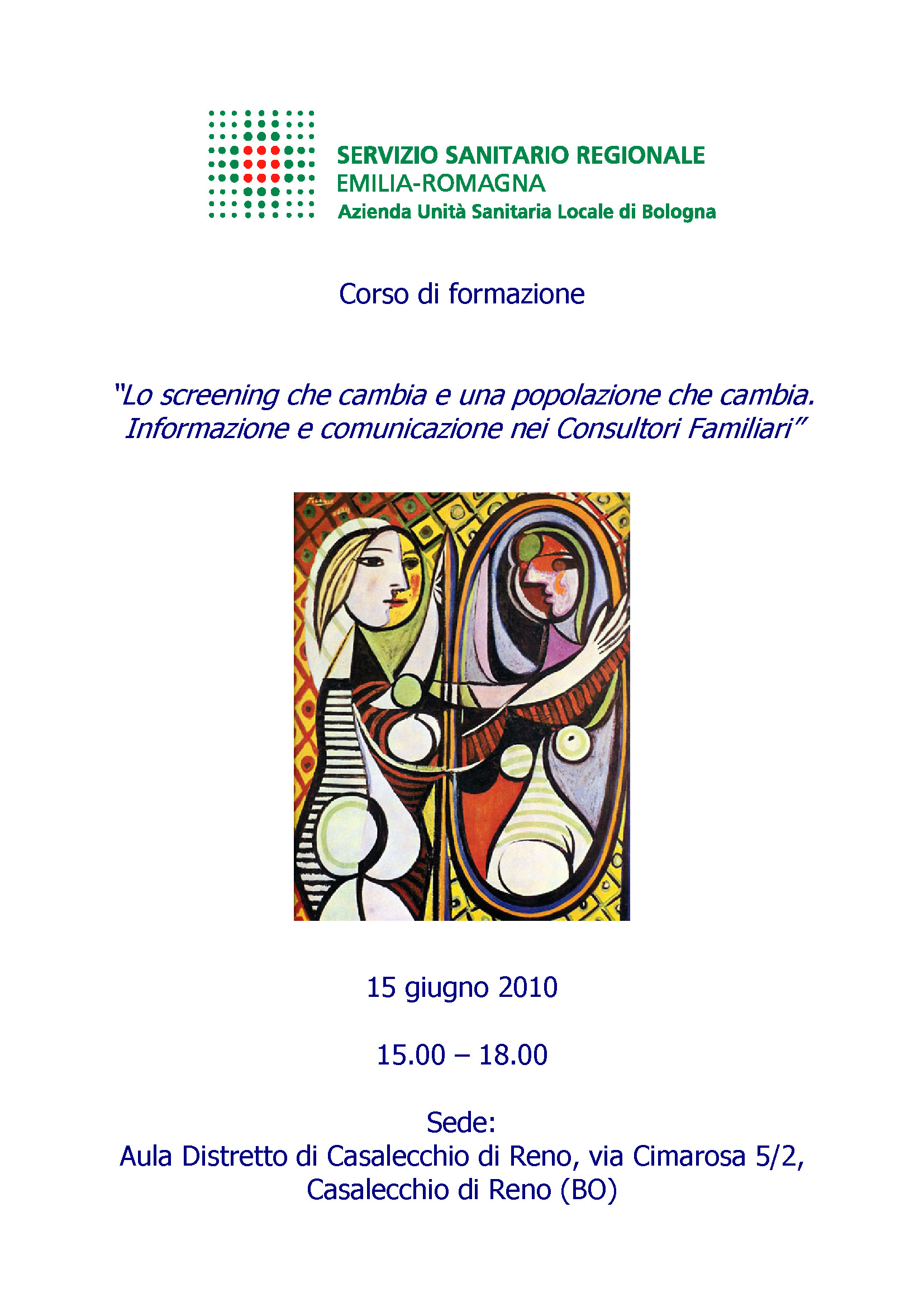 Prosegue la campagna sulla prevenzione oncologica all’interno delle struttureterritoriali dell’Azienda, con una iniziativa formativa intitolata “Loscreening che cambia e una popolazione che cambia. Informazione e comunicazionenei Consultori Familiari”, che si è svolta il 15 giugno a Casalecchio di Reno.