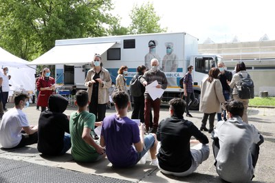 Venerdì 7 maggio, contestualmente alla presentazione del progetto, il mezzo mobile del Dipartimento di Sanità Pubblica fa tappa all’IIS Belluzzi Fioravanti, per effettuare tamponi molecolari su base volontaria agli studenti e al personale scolastico.