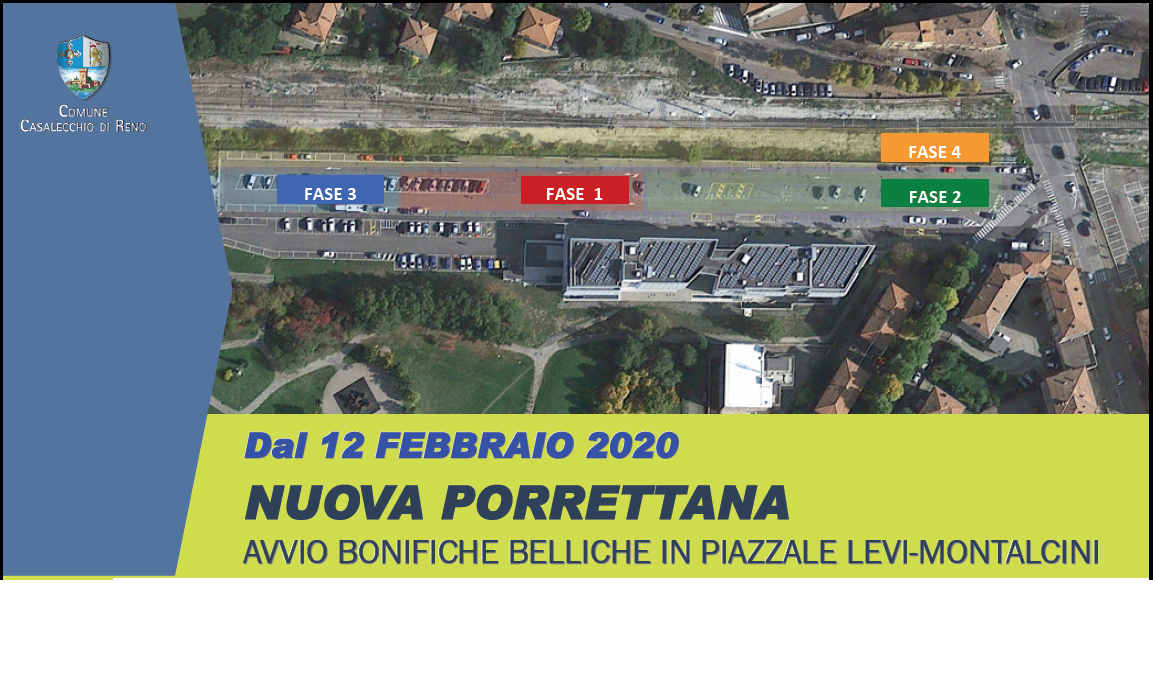 Inizio, dal 12 febbraio, delle bonifiche belliche a cura di Anas, nel Piazzale Levi-Montalcini. Il cantiere si svilupperà in 4 fasi (della durata complessiva di 7/8 mesi circa) in modo tale da