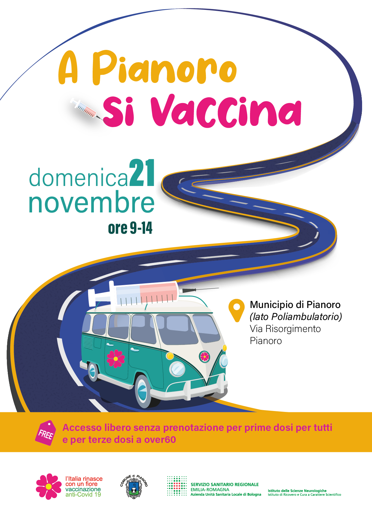 Domenica 21 a Pianoro, in accordo con l’amministrazione comunale, il camper vaccinale dell’Azienda USL sarà a fianco del Municipio, in via Risorgimento, per offrire la vaccinazione senza prenotazione prioritariamente a tutte le persone che ancora non si sono vaccinate, ma anche agli over 60 che devono fare la terza dose per i quali sono trascorsi 6 mesi dalla seconda dose o dalla dose unica.