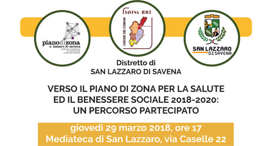 In attuazione del Piano Sociale Sanitario Regionale 2017-2019, il Distretto Socio-Sanitario San Lazzaro di Savena avvia un percorso di condivisione aperto e partecipato per la definizione del Piano di Zona distrettuale per la Salute e il Benessere Sociale 2018-2020