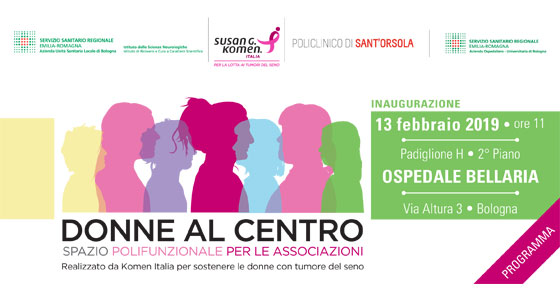 Donne al centro – Lo spazio polifunzionale per le donne con tumore del seno nato da una collaborazione tra Ausl di Bologna, Azienda Ospedaliero Universitaria S. Orsola-Malpighi e l’associazione Susan G. Komen Italia