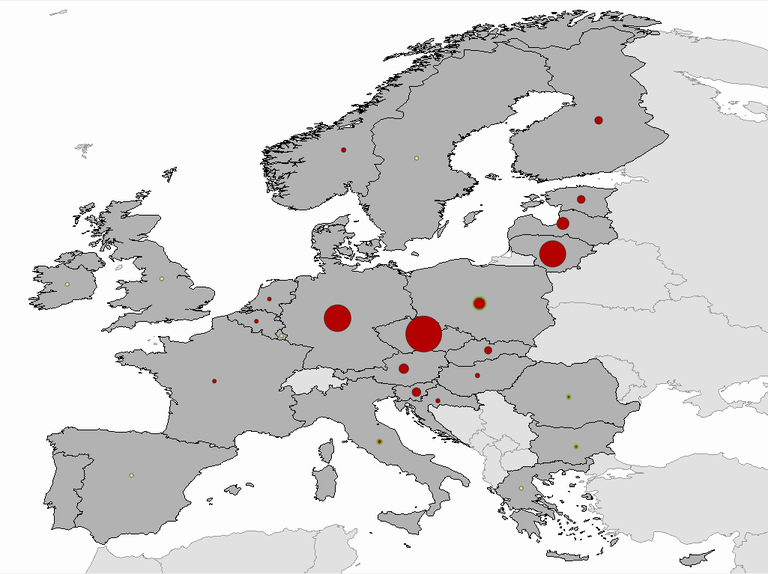 Si trova in Europa occidentale e centrale, e nei paesi del nord dell'Asia. Attualmente i paesi considerati a maggior rischio, in base all’incidenza di casi clinici, sono gli Stati Baltici, la Slovenia e la Russia.