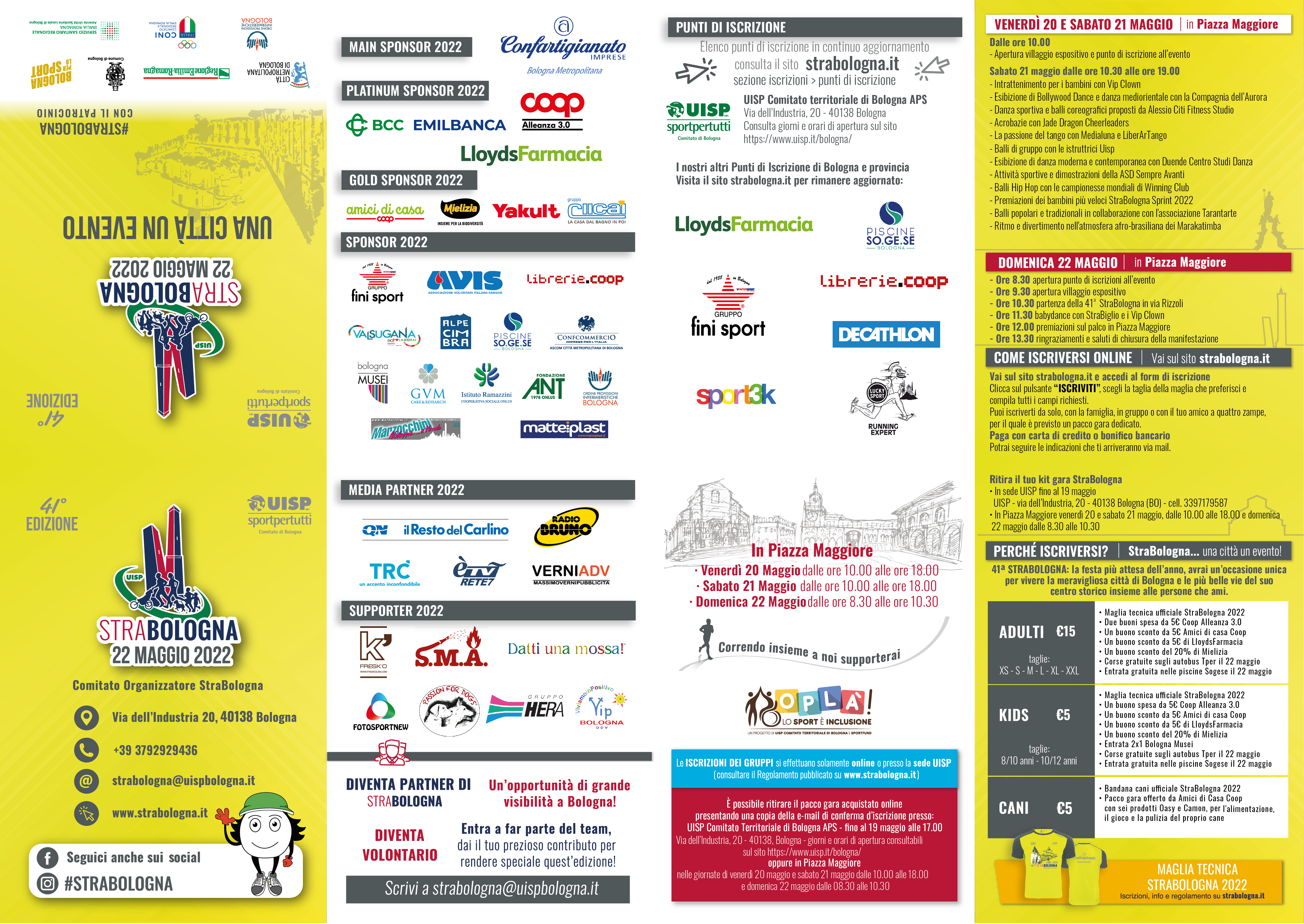 La StraBologna è l’occasione per vivere insieme le bellezze del centro storico di Bologna e per scoprire la città da un nuovo punto di vista. Quest'anno compie 41 anni e si svolgerà domenica 22 maggio con partenza alle 10.30 da via Rizzoli per poi invadere tutto il centro di Bologna.