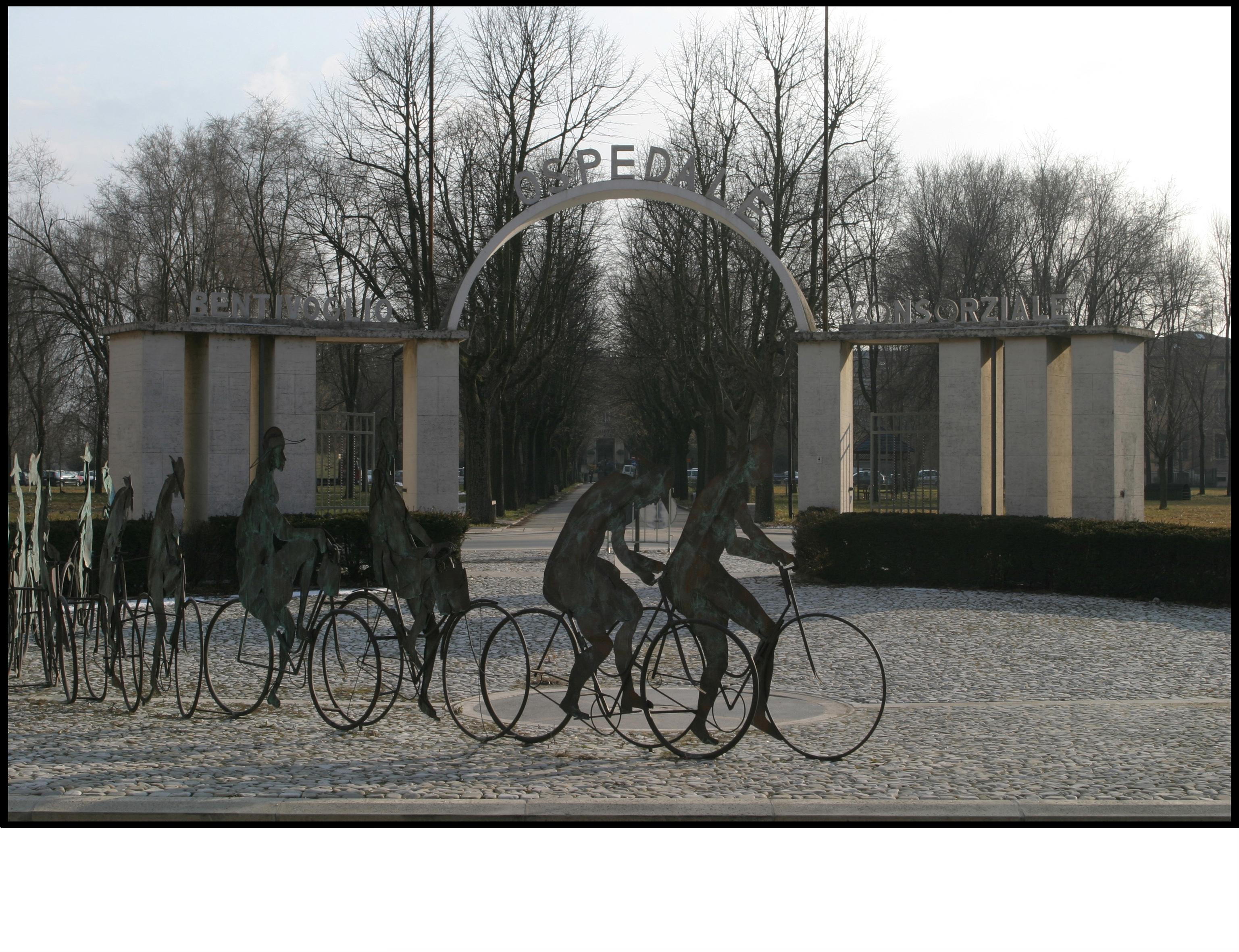 Home Ospedale di Bentivoglio, la scultura "Le Mondine" di N. Zamboni e S. Bolzani di fronte al viale d'ingresso